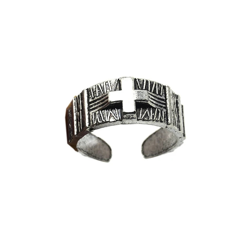 Ring - Cross Opening Adjustable Antique Silver Plated - Bricks Masons