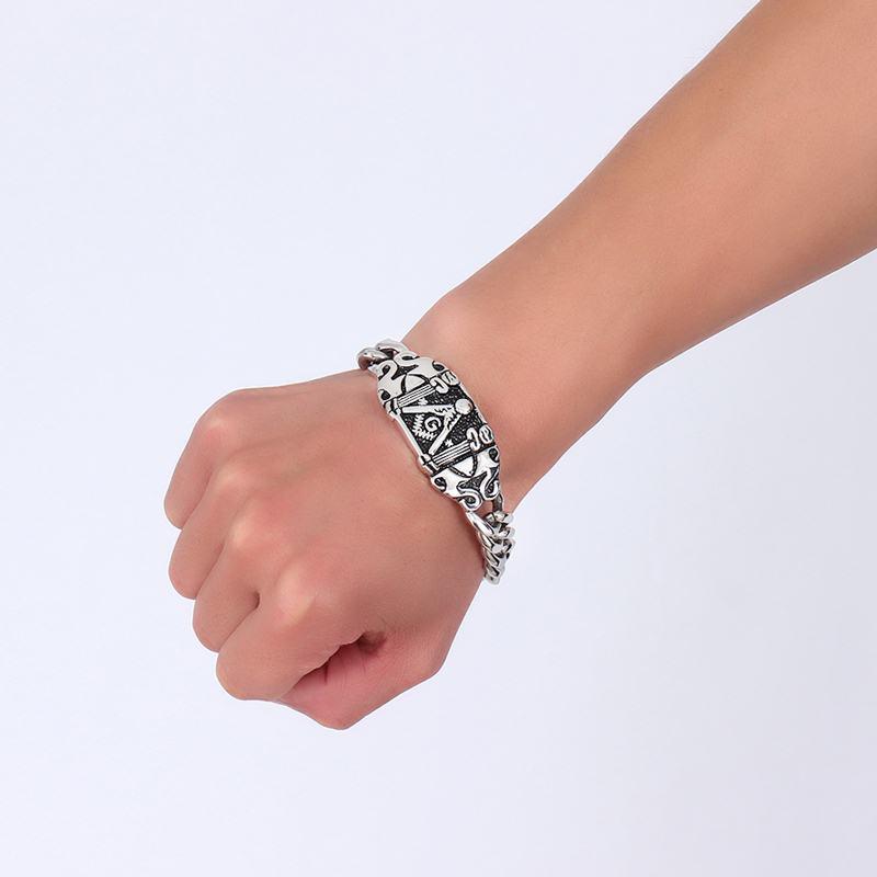 • Chunky sturdy and durable men's biker stainless steel masonic bracelet, with a masonic symbol, never fade