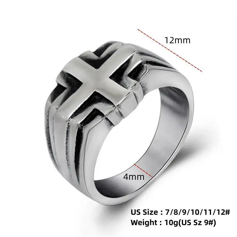 Knights Templar Ring - 12mm Stainless Steel Cross