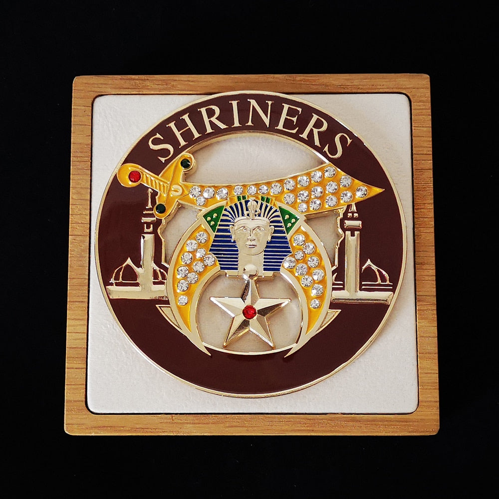 SHRINERS Rhinestone Minarets Car Emblem Medallion - Dark Brown